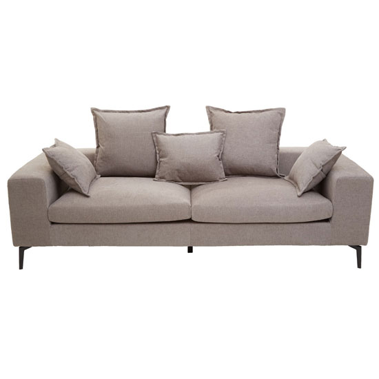 Grey coloured linear detailing adds a luxe accent to the Anton Sofa. FEATURES : Material : Fabric Finish : Grey The spacious three seat Marseille sofa features a low back, level with the armrests Upholstered in grey coloured fabric and wooden legs complement the linear detailing of the sofa Available at an affordable price Images shown are for illustration purpose only DIMENSIONS : Height : 75cm Width : 228cm Depth : 101m